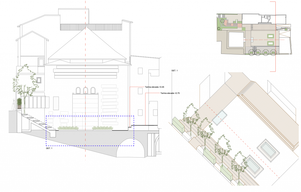 Este es un espacio emblemático en el centro histórico de la ciudad de Toledo, muestra del urbanismo medieval toledano. En el siglo XII y XIII fue un corral de tipo islámico, y ocupado en su día por el Palacio de los Trastámara. Con el paso del tiempo, el espacio se degradó considerablemente hasta que en 2014 el Consorcio de la Ciudad de Toledo inicia su restauración y puesta en valor, especialmente del Salón Rico con un increíble artesonado mudéjar. El proyecto ha recuperado un espacio urbano vivo para la ciudadanía con multitud de actividades, al tiempo que ha mejorado la comunicación entre puntos clave de la ciudad. El proyecto se realizó en colaboración con el Consorcio de la ciudad de Toledo y el estudio de arquitectura José Antonio Rosado.